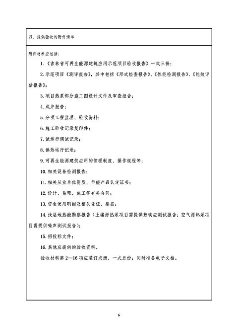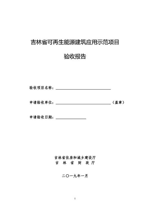 1.《吉林省可再生能源建筑應用示范項目驗收報告》一式三份;