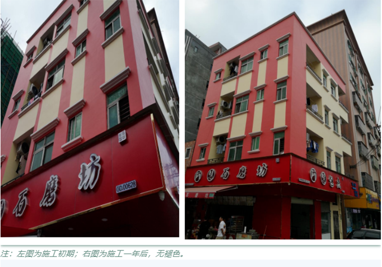 水性氟碳漆在戶外可長期保持原色,不褪色,保持氟碳漆涂層原有的裝飾性能,可持久靚麗10年以上。