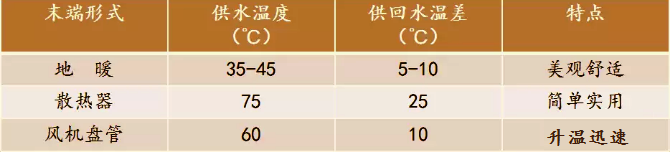 三、不同供暖末端形式的供水溫度及溫差
