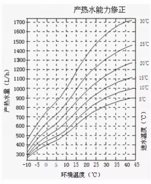 宿舍用空氣源熱泵熱水器,其制熱量修正曲線如下圖: