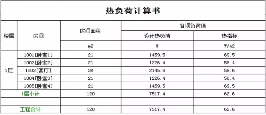 經(jīng)負(fù)荷計算可得熱負(fù)荷計算書(如圖二):