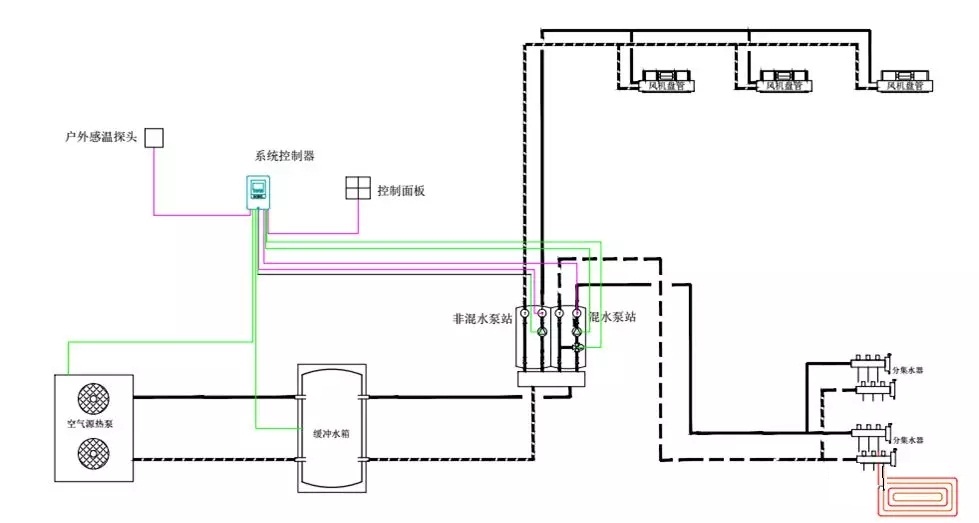 3、在設計兩聯供系統時,務必考慮在水力平衡的前提下,風機盤管和地暖可以同時開啟。