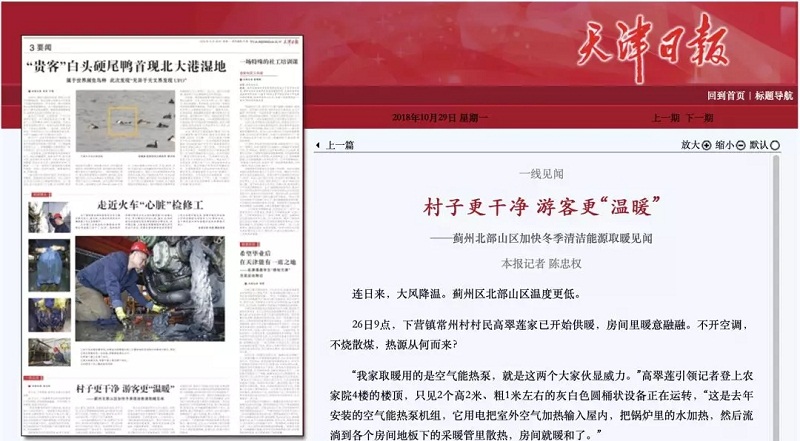 天津日報(bào)和山東公共頻道:供暖用上空氣源熱泵,節(jié)能又環(huán)保!
