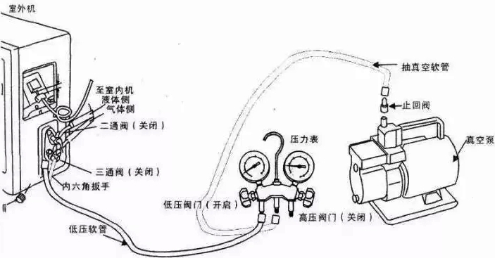 因此,空氣源熱泵在安裝時候必須做好抽真空。