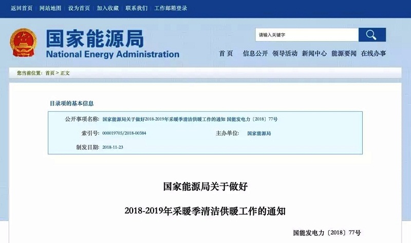 轉發:國家能源局關于做好2018-2019年采暖季清潔供暖工作的通知