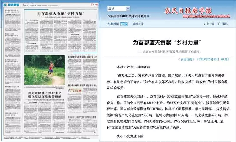 在首都藍天保衛戰中,京郊農村地區“煤改清潔能源”是重要一環。經過5年的奮力工作,目前全市已經有2513個村莊、約95萬戶實現了“無煤化”,按照燃煤供暖負荷計算,可以減少散煤燃燒約300萬噸。依據有關測算標準,相比無煙煤,“煤改清潔能源”實現二氧化硫減排2.2萬噸,氮氧化物減排0.48萬噸,一氧化碳減排42萬噸,揮發性有機物減排1.2萬噸,PM10減排約4萬噸,PM2.5減排3.2萬噸。事實證明,農村“煤改清潔能源”為改善首都空氣質量作出了貢獻。