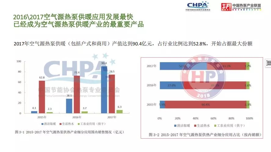 空氣源熱泵產品三大應用領域供暖發(fā)展最快,市場份額已占主導
