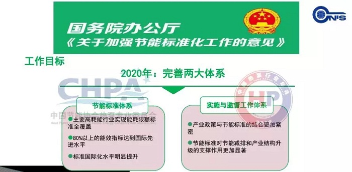 首先,向大家簡要介紹一下我國標準標識的概況。我國高度重視節能標準化工作,除《節能法》之外,很多政策文件都提到要加快制定能效和能耗限額標準。在2015年國務院辦公廳頒布的《關于加強節能標準化工作的意見》中提到,到2020年國家要完善兩大標準體系建設:一是“節能標準體系”,提出主要高能耗行業實現能效限額標準全覆蓋,80%以上的能效指標都要達到國際先進水平,標準國際化水平要明顯提升;二是“實施與監督工作體系”,要求產業政策與節能標準結合更加緊密,節能標準對節能減排和產業結構升級起到顯著的支撐作用。