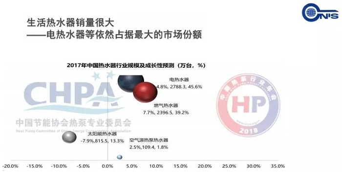 下面介紹一下國內外相關標準,據統計,我國建筑能耗約占全社會能耗總量的25%,建筑生活熱水和供暖占建筑能耗總量的約60%,所以說,熱水和供暖設備的節能潛力非常巨大。據產業在線統計報告顯示,我國生活熱水器銷量非常大。2017年電熱水器銷售2788.3萬臺,占熱水器銷量的45.6%,燃氣熱水器有27.7%的增長,空氣源熱泵熱水器有2.5%的增長,銷售109.4萬臺,占比1.8%。