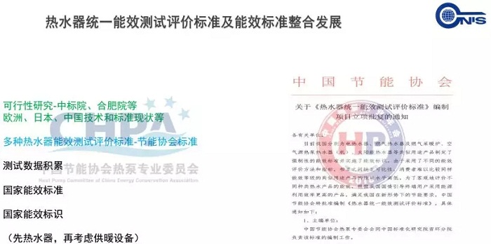 最后,為大家介紹一下統一熱水器測試方法的研究進展。為了落實國務院有關強制性標準整合的有關精神,2016年4月,由中國節能協會與中國標準化研究院聯合啟動熱水設備能效檢測方法與能效標準整合可行性研究第一次研討會,會議一致認為多種熱水器能效標識統一評價具有重要意義。由于統一評價的難度,由節能協會立項制定熱水器統一測試方法團體標準。
