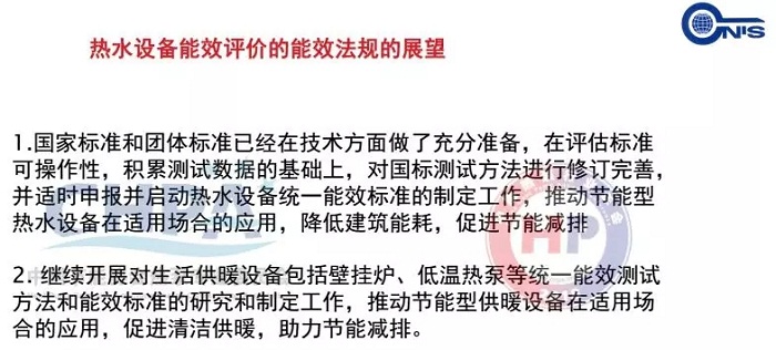 當前,國家標準和團體標準已經在技術方面做了充分準備,希望審定發布以后,相關的企業和檢測機構可以依據標準進行測試,在評估標準可操作性和積累測試數據的基礎上,對國標的測試方法進行修訂完善,并適時申報并啟動熱水設備統一能效標準的制定工作;同時,基于熱水設備的能效標準測試方法的制定經驗,我們將繼續開展對生活供暖設備包括壁掛爐、低溫熱泵等統一能效測試方法和能效標準的研究和制定工作,推動節能型熱水和供暖設備在適用場合的應用,促進清潔供暖,助力節能減排。