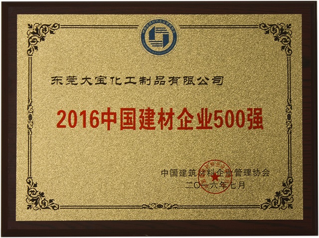 東莞大寶化工制品有限公司在中國(guó)建筑企業(yè)管理協(xié)會(huì)、中央國(guó)情調(diào)查委員會(huì)及焦點(diǎn)中國(guó)網(wǎng)的聯(lián)合評(píng)測(cè)中,榮獲“2016年中國(guó)建筑企業(yè)500強(qiáng)”榮譽(yù)獎(jiǎng)項(xiàng)。