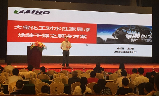 2016年6月5日—世界環(huán)境日,為涂料行業(yè)熱切關(guān)注的,由中國涂料工業(yè)協(xié)會(huì)主辦,中國水性木器涂料產(chǎn)業(yè)聯(lián)盟、《中國涂料》雜志、北京涂博展覽公司聯(lián)合承辦的以“打造美麗中國,從水性環(huán)保開始”為主題的第十屆中國國際水性木器漆涂料發(fā)展研討會(huì)在上海隆重召開。會(huì)議邀請(qǐng)了環(huán)保部、中國石化聯(lián)合會(huì)、家具協(xié)會(huì)、涂料協(xié)會(huì)等領(lǐng)導(dǎo)參與、涂料行業(yè)上下游企業(yè)代表約500人參加。大寶化工陳春華總經(jīng)理、培訓(xùn)學(xué)院黃文敏校長受邀出席了本次大會(huì),黃校長在會(huì)上做了《大寶化工于水性家具涂料涂裝干燥之解決方案》專題報(bào)告,受到大會(huì)一致好評(píng)。