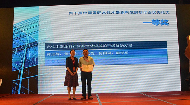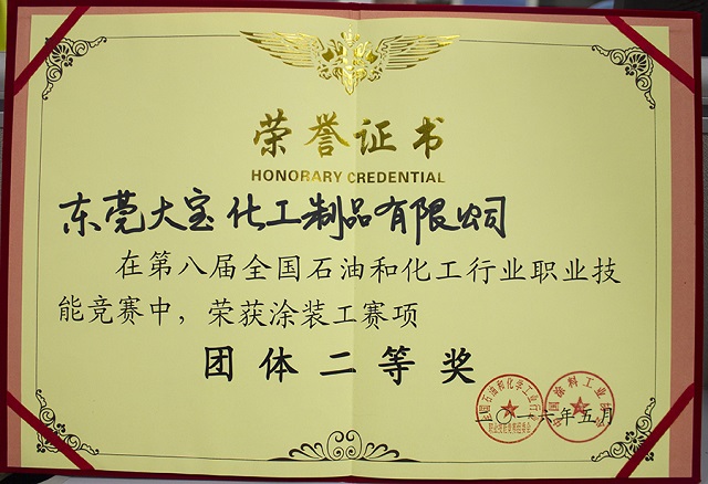 會(huì)議上表彰了一批十年來在推動(dòng)中國水性木器涂料產(chǎn)業(yè)化進(jìn)程中做出特殊貢獻(xiàn)的企業(yè)和個(gè)人,大寶漆除了獲得“中國水性木器涂料發(fā)展特別貢獻(xiàn)獎(jiǎng)”外,由大寶化工技術(shù)部林進(jìn)輝等人撰寫的《水性木器涂料在家具涂裝領(lǐng)域的干燥解決方案》和《自交聯(lián)丙烯酸酯乳液在水性木器封閉底漆中的應(yīng)用研究》還分別榮獲本次論文評(píng)選一等獎(jiǎng)和優(yōu)秀獎(jiǎng),大寶漆還奪得了“全國水性涂裝職業(yè)技能大賽團(tuán)體二等獎(jiǎng)”,而大寶化工工程師周光偉先生憑借多年水性涂裝經(jīng)驗(yàn)和精湛的技術(shù)榮獲“全國石油和化工行業(yè)技術(shù)能手”的榮譽(yù)稱號(hào)。